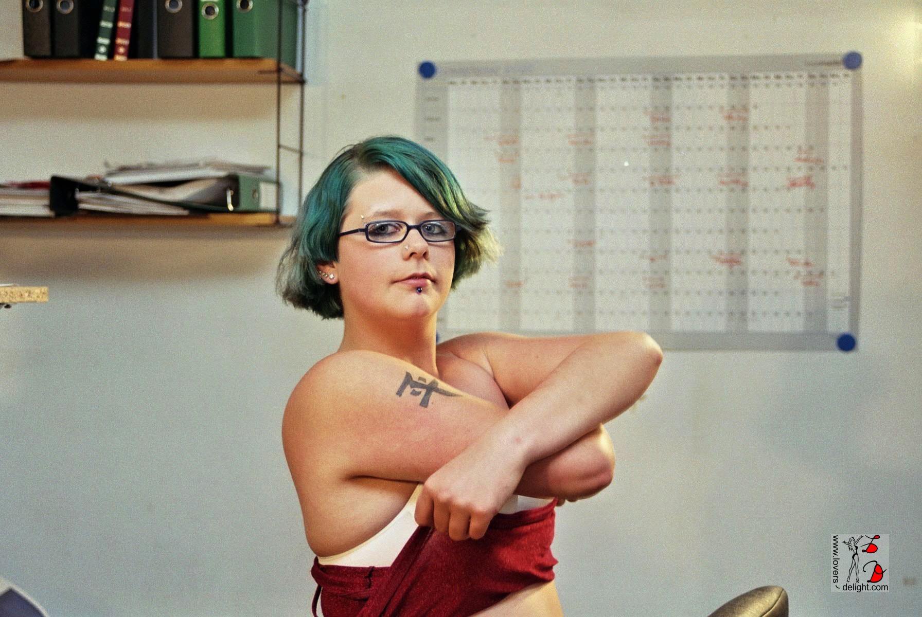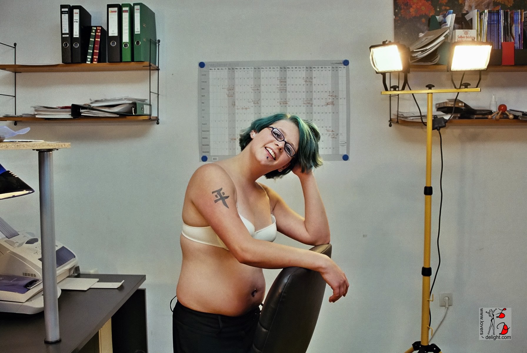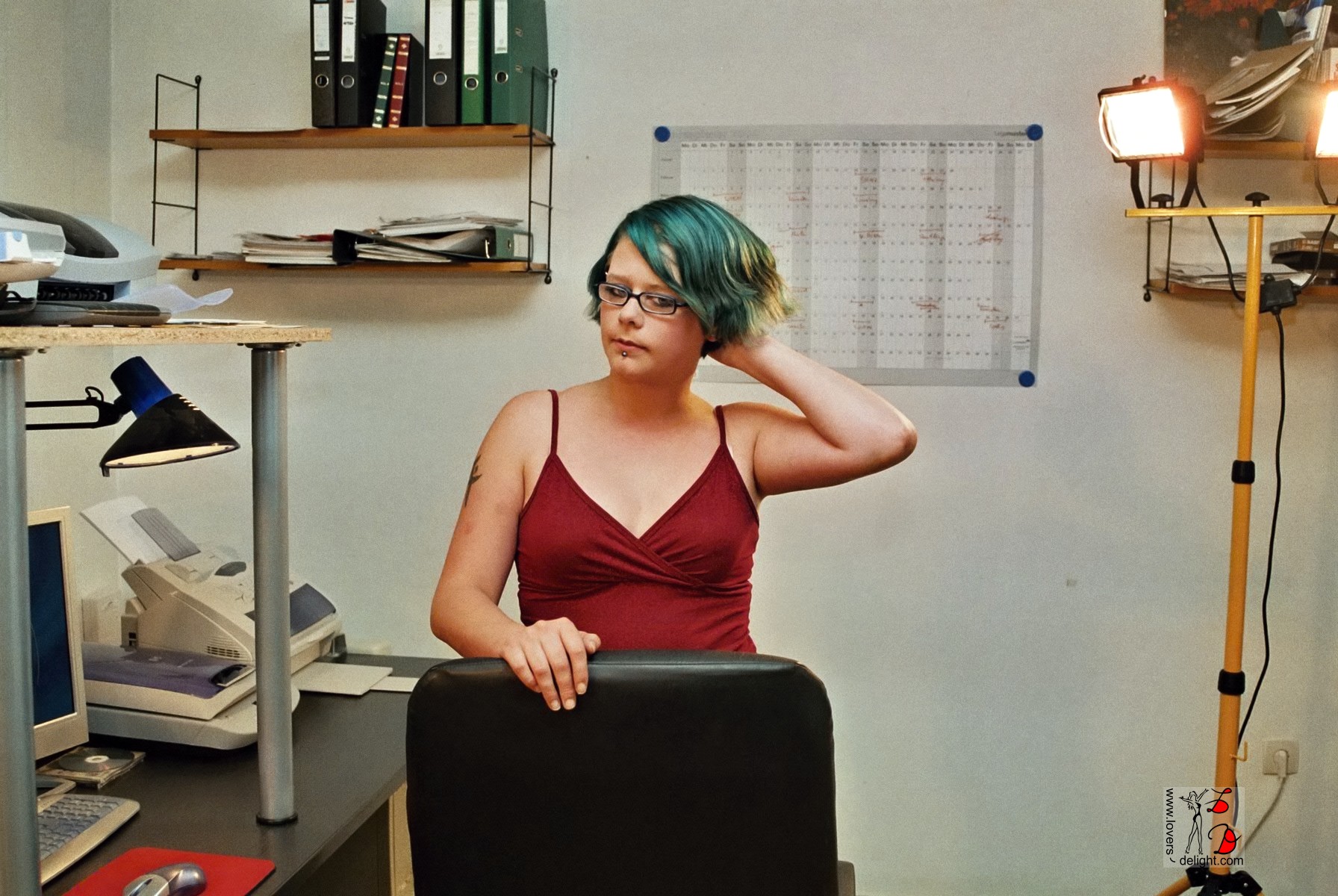 Im August 2005 besuchte mich Alberto mit Manuela. Leider hatten beide nicht viel Zeit, aber wenn mir eine Stunde reicht, könnte ich schnell ein paar Fotos schießen. Übrigens damals noch analog. Gesagt, getan. Schnell ein paar Strahler aufgestellt und schon ging es los. Manuela war schneller nackt (bis auf die Socken) als ich bis drei zählen konnte. Irgendwie hatte ich das Gefühl, dass sie das schon einmal gemacht hat 😉 .